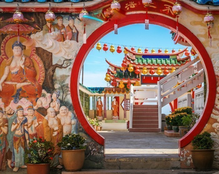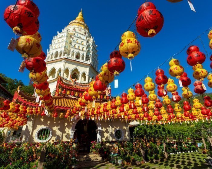 Du kommer först att besöka templet Kek Lok Si, som är ett av Malaysias mest imponerande tempel. Templet kombinerar kinesiska, thailändska och burmesiska arkitektoniska stilar med detaljerade sniderier och livfulla färger. Templet är byggt på en sluttning och består av flera plan med olika altare och statyer. I mitten av templet står en imponerande staty av barmhärtighetens gudinna, Kuan Yin, som tornar upp sig över området, medan den vackra pagodan på sju våningar stoltserar med sin enastående arkitektur och fantastisk utsikt över Penang.