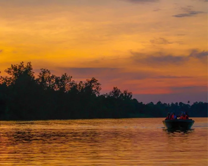 Senare på eftermiddagen blir du inbjuden till ytterligare en båttur, innan dagen övergår i natt. Medan båten sakta puttrar fram berättar din guide om regnskogen och hjälper dig att upptäcka dess flora och fauna som omger dig från alla håll. Du kan återigen ha turen att få syn på regnskogens unika djurliv när dvärgkrokodilen visar sig i vattnet eller när silversuren svingar sig från gren till gren uppe i trädkronorna.