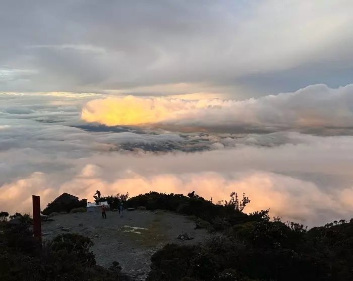 När du närmar dig Low’s Peak (4 095 meter) börjar dagsljuset sakta bryta fram. Väl uppe på toppen, om vädret tillåter, belönas du med en spektakulär vy över soluppgången, som målar himlen i rosa och gyllene nyanser medan bergen omkring långsamt träder fram. Utsikten från toppen är inget mindre än fantastisk, så ta dig tid att njuta av ögonblicket och fördjupa dig i naturens ofiltrerade skönhet.