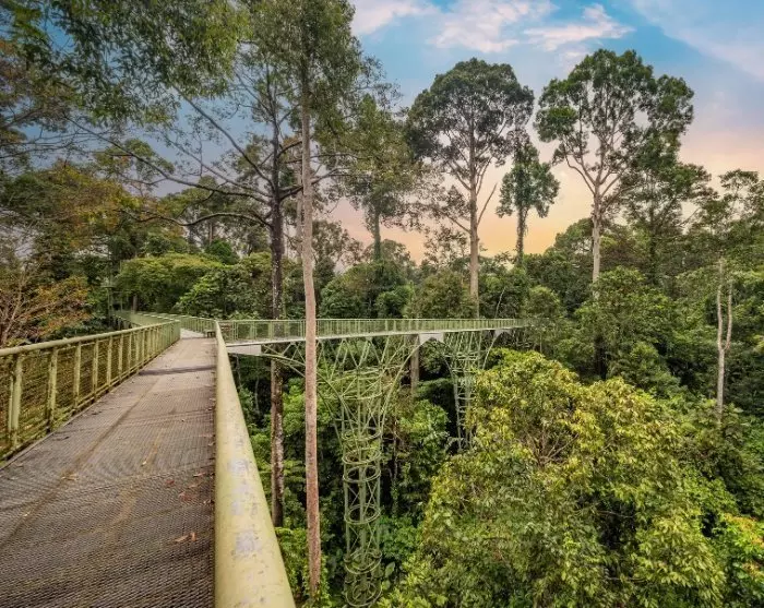Från Mt. Kinabalus höga toppar går resan vidare till Sabahs låglänta regnskogar. Här öppnar sig en värld av fascinerande natur och unikt djurliv som bäst upplevs med skickliga guider som tar dig på kvällsvandring vid Rainforest Discovery Centre, där du lyssnar till de nattaktiva djurens rörelser. Du besöker också Sepilok Orangutan Rehabilitation Centre och Sun Bear Conservation Centre och får en unik chans att komma nära både orangutanger och solbjörnar.