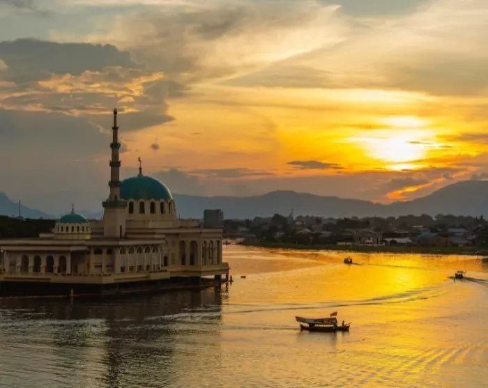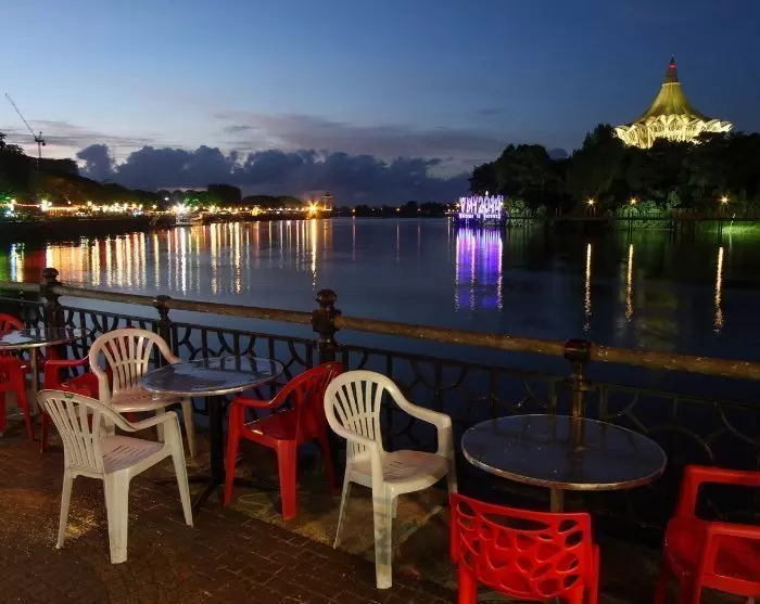 Med sitt vackra läge vid Sarawak-floden erbjuder Kuching en nästan kilometerlång promenadsträcka som bjuder in dig till att delta i det lokala livet med butiker och restauranger av alla slag. På kvällen är det ett självklart val att slå sig ner på någon av de många restaurangerna i den gamla stadskärnan, som lockar med allt från internationella favoriter till lokala specialiteter, såsom den smakrika laksa-soppan och nudelrätten kolo mee. Därefter kan du strosa längs floden och låta dig förtrollas av Kuchings vatten- och ljusshow, som äger rum varje kväll runt klockan 20 framför Sarawaks regeringsbyggnad.
