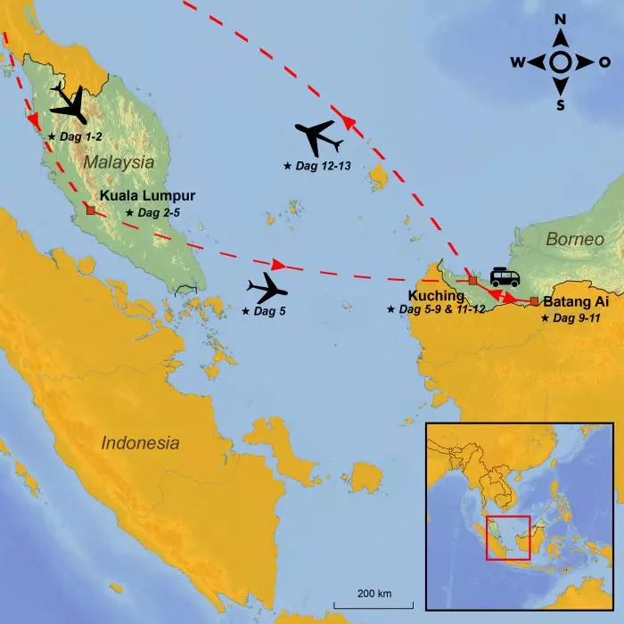 Du börjar din resa i Malaysias charmiga huvudstad Kuala Lumpur, och fortsätter i den malaysiska delstaten Sarawak på Borneo, där oförglömliga minnen och en djupare kulturell förståelse för denna fascinerande del av världen väntar dig.