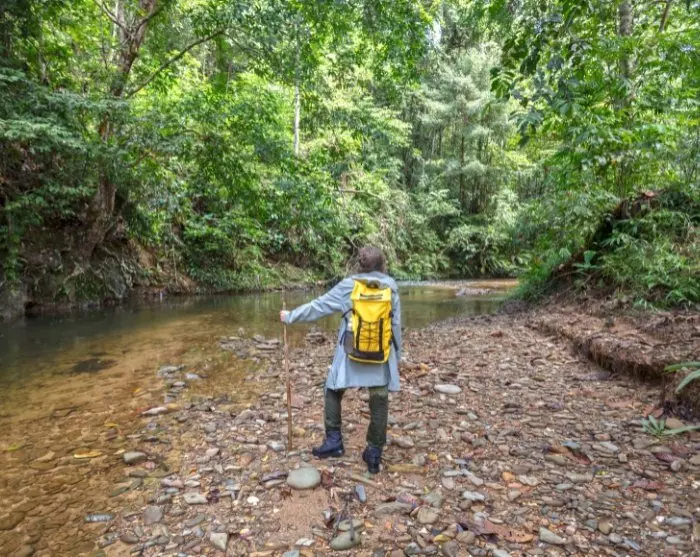 Vid ankomst följer du det omfattande nätverket av stigar genom regnskogen, där du kan utforska parkens mångsidiga vegetation, som inkluderar mangroveträsk, tropiska sumpskogar, klipp- och strandvegetation. På din väg, som går både upp och ner, gäller det att hålla ögonen öppna, då nationalparkens unika djurliv inkluderar bl.a. silverlangurer, långsvansade makaker, bartvinar, varaner, ormar och en mängd fågelarter. I Bakos regnskog kan du också ha turen att få se Borneos näsapor, som stolt pekar fram sina näsor – ju större näsa, desto mer attraktiv anses en näsaphane vara bland honorna.