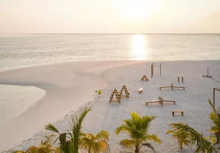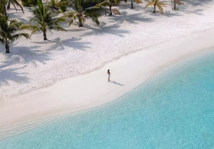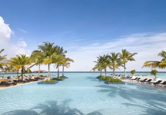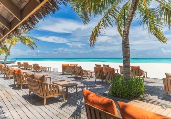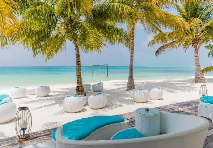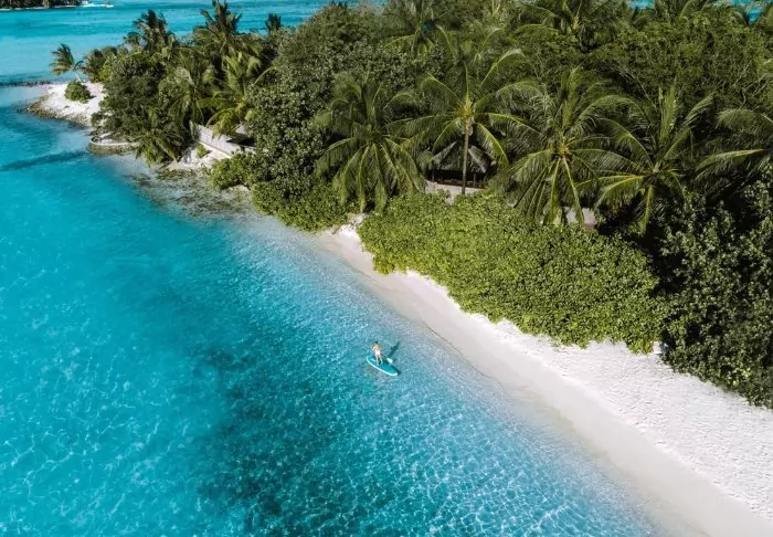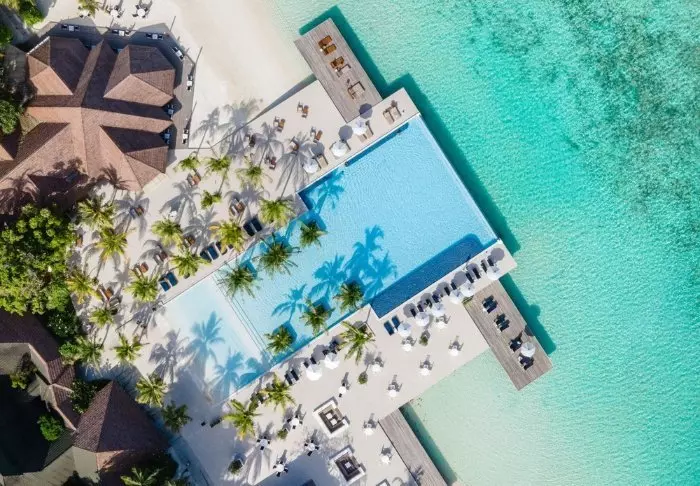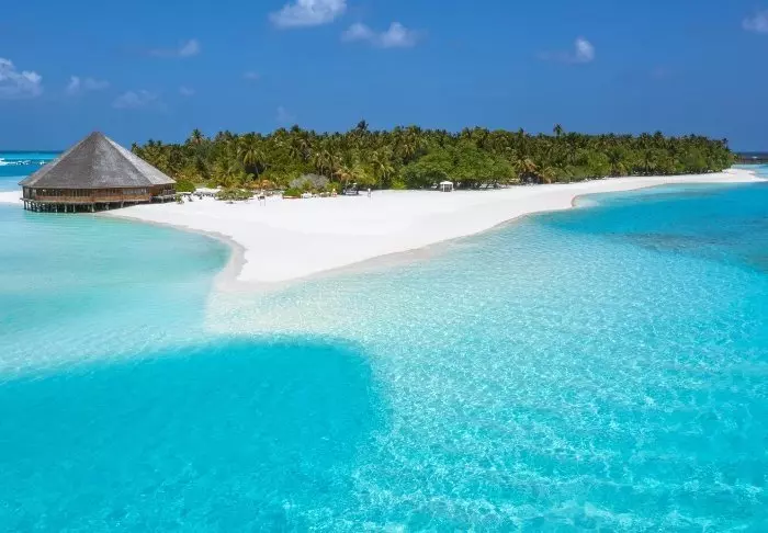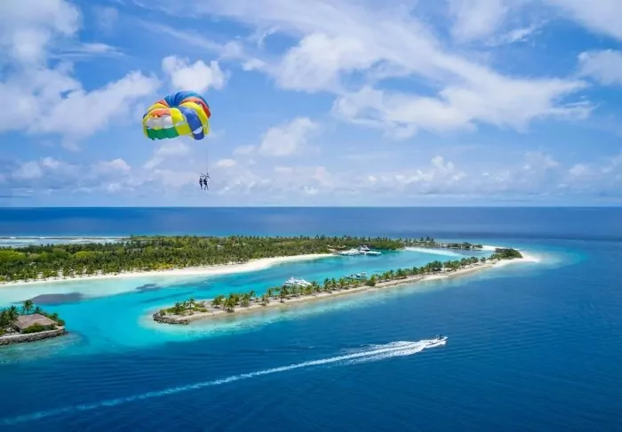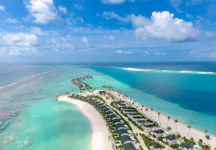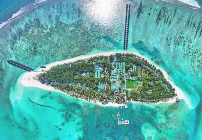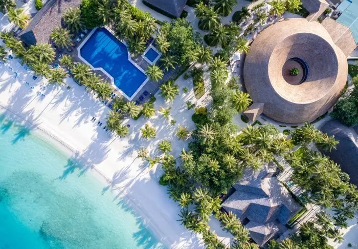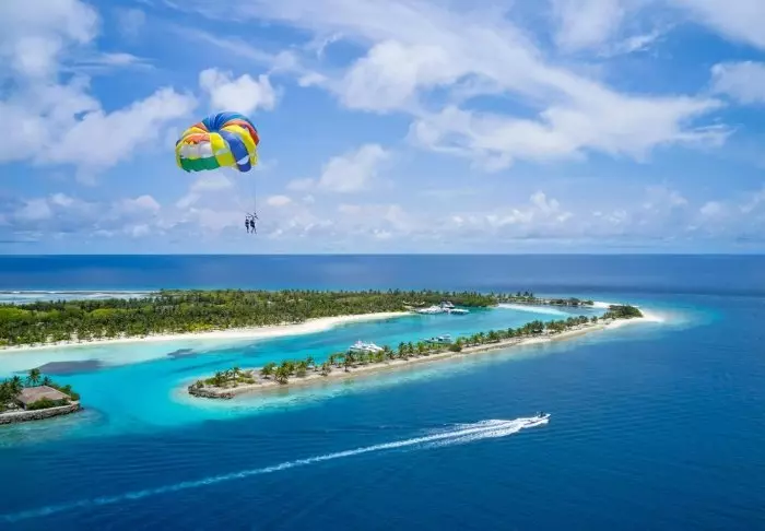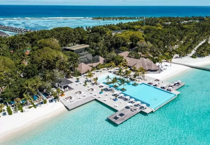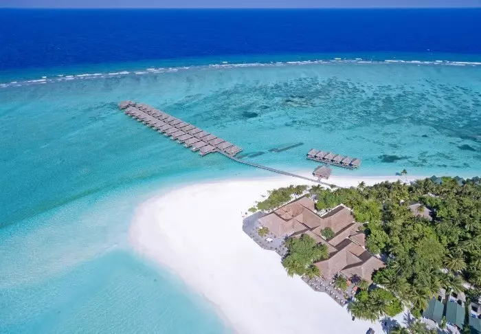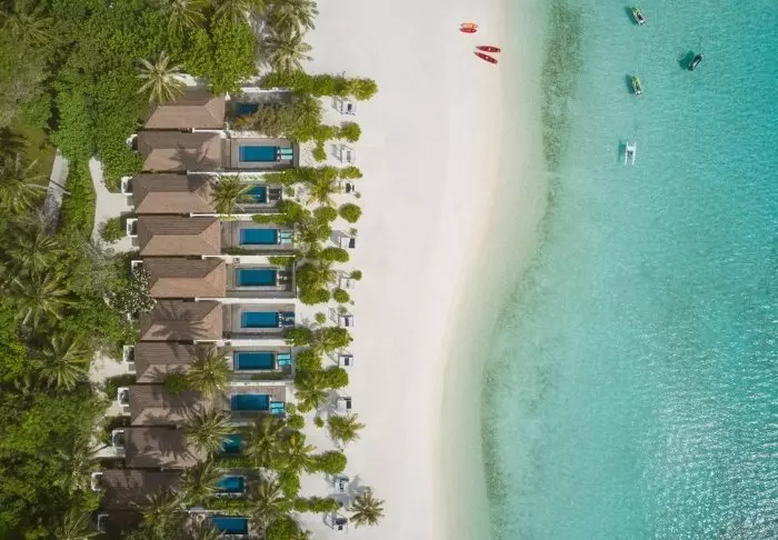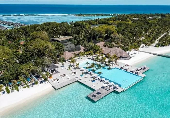 Denna lyxiga ö är formad som en fjäril och ligger cirka 40 minuters resa med speedbåt från Malé.