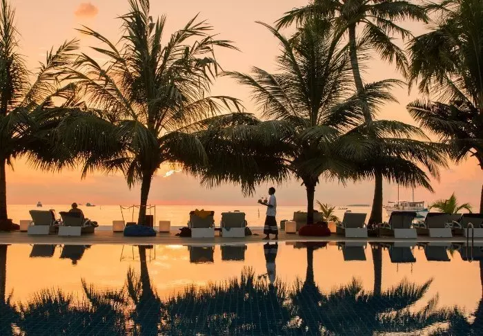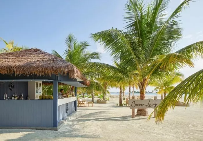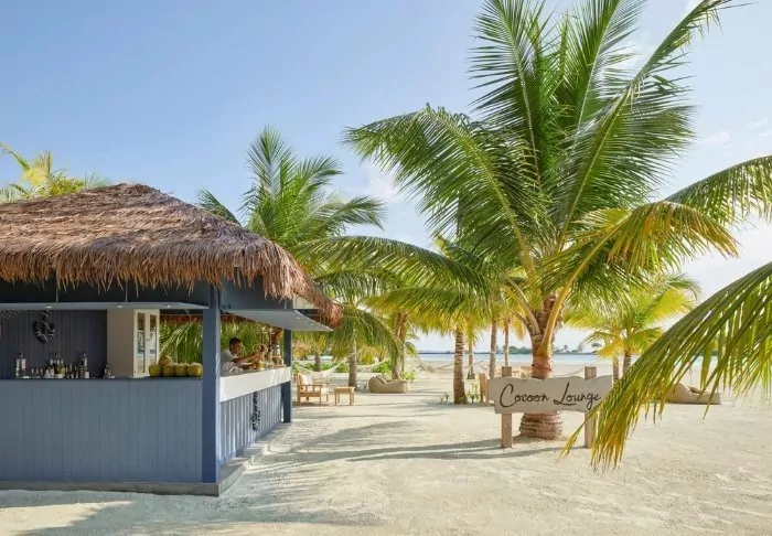 På kvällen, när solen sakta går ner, kan du njuta av en drink på en av öns loungebarer, som erbjuder en avslappnad atmosfär med utsikt över stranden.