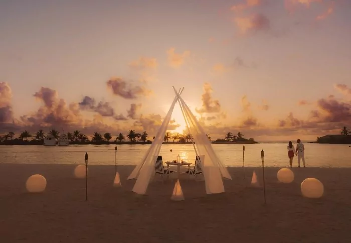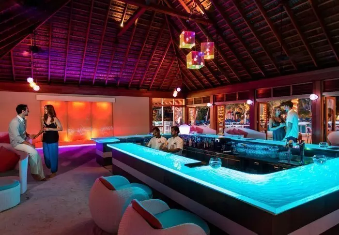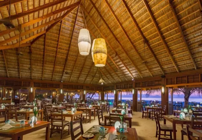 På kvällen kan du njuta av solnedgången med en drink från baren, Hulgangu, innan det är dags att äta middag på en av resortens många restauranger. Här kan du få allt från maldivisk hummer till japanska teppanyaki-rätter. Det finns även möjlighet till ”in villa dining”, om du vill äta i din villa.