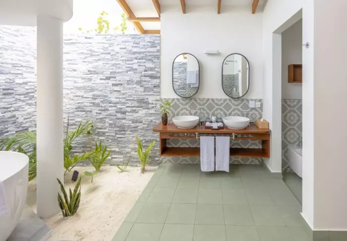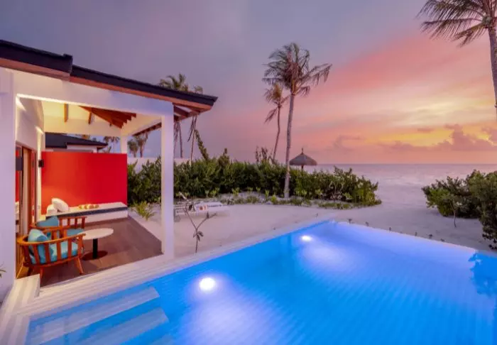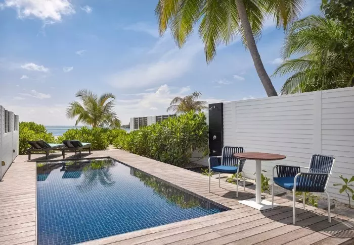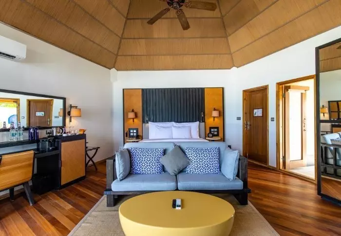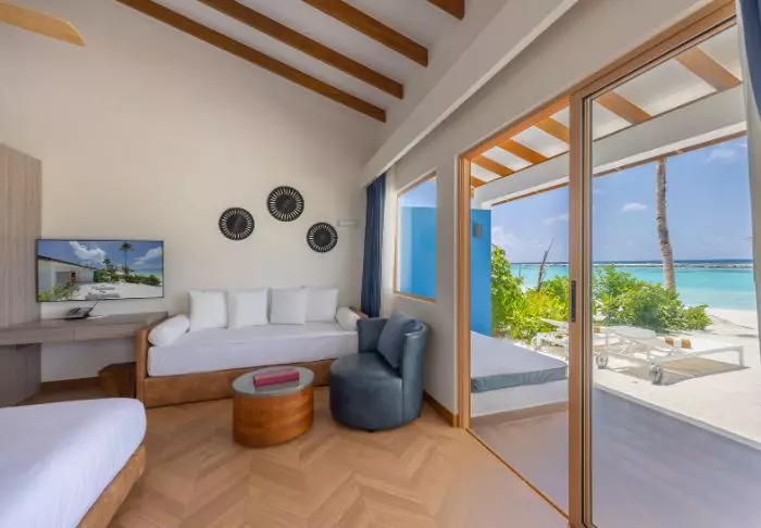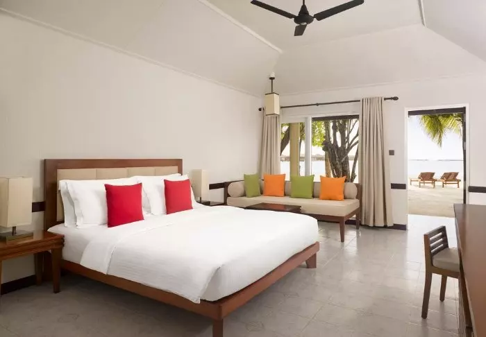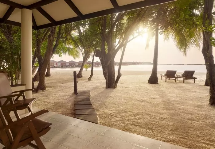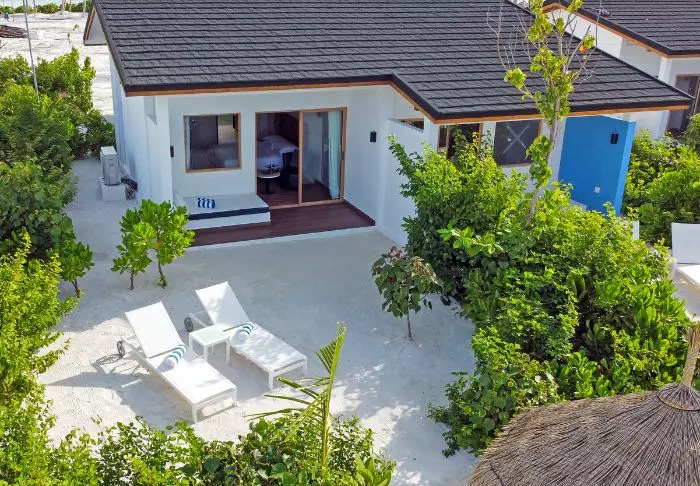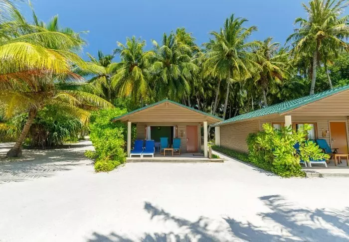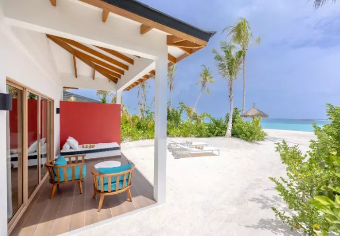De 50 kvadratmeter stora strandvillorna har plats för antingen två vuxna och ett barn eller tre vuxna. Samtliga villor ligger på öns östra sida, vilket ger dig möjlighet att vakna upp och se den vackra soluppgången. Rummen är inredda i fräscha färger och nyanser som komplimenterar omgivningarna på Maldiverna. Det tillhörande badrummet har ”open-air”-faciliteter. Som pricken över i:et ligger villorna med direkt åtkomst till den kritvita sandstranden.