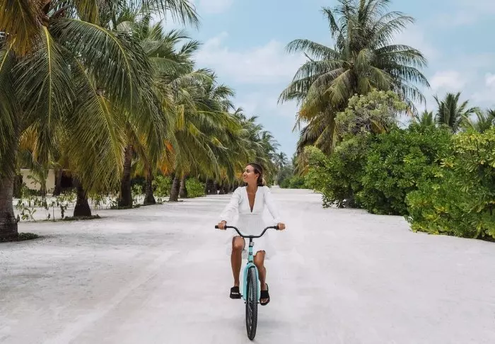Meeru är uppdelad i två zoner, där en zon är särskilt avsedd för par och den andra för familjer med barnpool och en familjevänlig restaurang. Sandiga stigar med vajande palmer och tropiska träd förbinder olika områden på ön, så att du inte behöver gå hela vägen runt ön för att komma till din favoritrestaurang eller poolen. Om du tycker att avstånden är för stora, kan du hyra en cykel eller få öns buggy att köra dig.