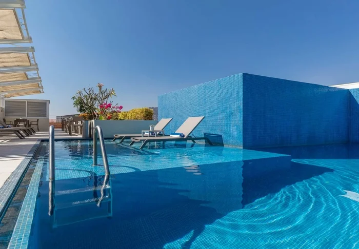 Se fram emot ett uppfriskande dopp i hotellets pool på takterrassen, som bjuder på en betagande panoramautsikt över staden. Här kan du luta dig tillbaka på en solstol med en bra bok eller en svalkande drink. Du kan också besöka hotellets gym om du känner för att hålla igång.