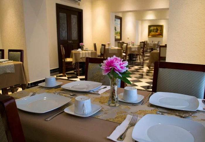 Hotellet är byggt i traditionell kolonialstil och målat i en vacker gul färg som harmonierar med resten av stadens hus. Alla rum är utrustade med aircondition, TV, värdeskåp och wifi.