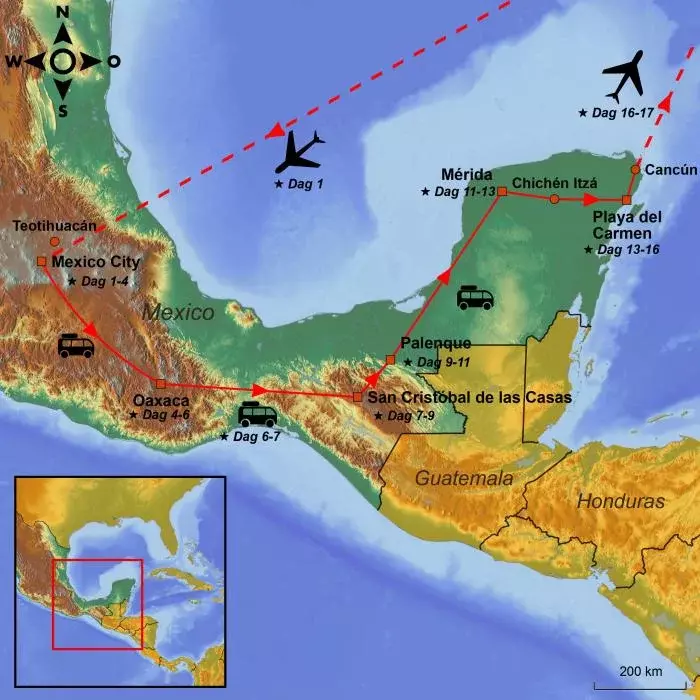 Upptäck Mexikos färgstarka mångfald på en resa som förenar kultur, historia, natur och avkoppling. Du inleder din resa i Mexico City, där storstadens puls möter koloniala kvarter och aztekiska ruiner. Därefter fortsätter du till charmiga Oaxaca, berömt för sitt rika kök, färgglada marknader och den imponerande ruinstaden Monte Albán. I högländerna väntar San Cristóbal de las Casas med sina mysiga gränder och levande lokala marknader. Resan går vidare genom Chiapas natursköna landskap, med stopp vid vackra vattenfall och de mytomspunna Palenqueruinerna, dolda djupt inne i djungeln. I Mérida, som är Yucatáns kulturella hjärta, ges du möjlighet att utforska vacker arkitektur och lokal gastronomi. Din resa avslutas med skön avkoppling under palmerna vid Playa del Carmens vita stränder och det turkosblå havet.