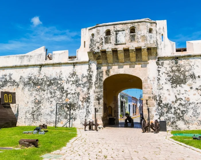 På stadsvandringen får du höra mycket mer om stadens historia och roll under kolonialtiden, samt spännande berättelser om pirater och erövrare som försökte inta staden. Turen inleds med ett besök på det lokala kulturcentret och ett charmigt, restaurerat kolonialhus, känt som Hus nr 6, som ger dig en unik inblick i stadens koloniala historia. Härifrån fortsätter turen genom Havsporten (Puerta del Mar), som en gång fungerade som port till havet, och vidare till Baluarte de la Soledad, en bastion från 1600-talet som idag inrymmer Museo de Arquitectura Maya – ett fascinerande museum om mayaarkitektur.