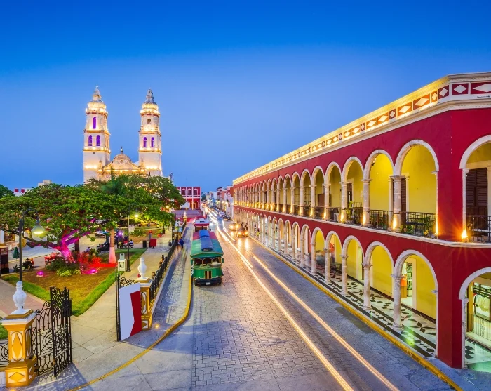 Efter frukost blir du upphämtad på ditt hotell, och därefter går färden vidare till den pastellfärgade kuststaden Campeche. Vid ankomst har du tid att äta lunch innan det är dags för en spännande stadsvandring på eftermiddagen. Samlingsplatsen för stadsvandringen ligger fem minuters promenad från ditt hotell, och adressen får du skickad till dig före din avresa till Mexiko.