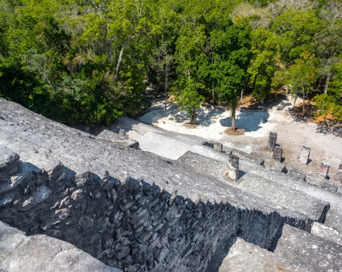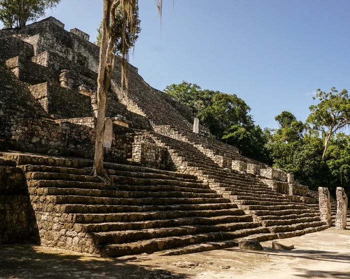Låt din inre Indiana Jones vakna när du klättrar uppför en av de högsta mayaruinerna: Struktur II, cirka 45 meter hög. Från toppen får du en fantastisk utsikt över trädtopparna, och vid klart väder kan du ibland skymta ruinerna av rivalstaden Tikal i Guatemala vid horisonten.