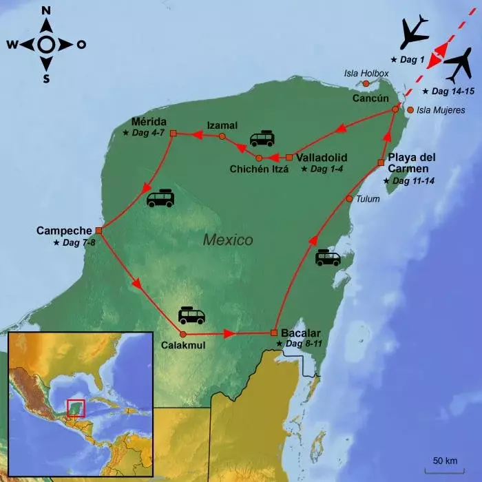 Idag är det avresa från din valda flygplats och resan går mot Cancún på Yucatánhalvön i det underbara Mexiko.
