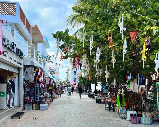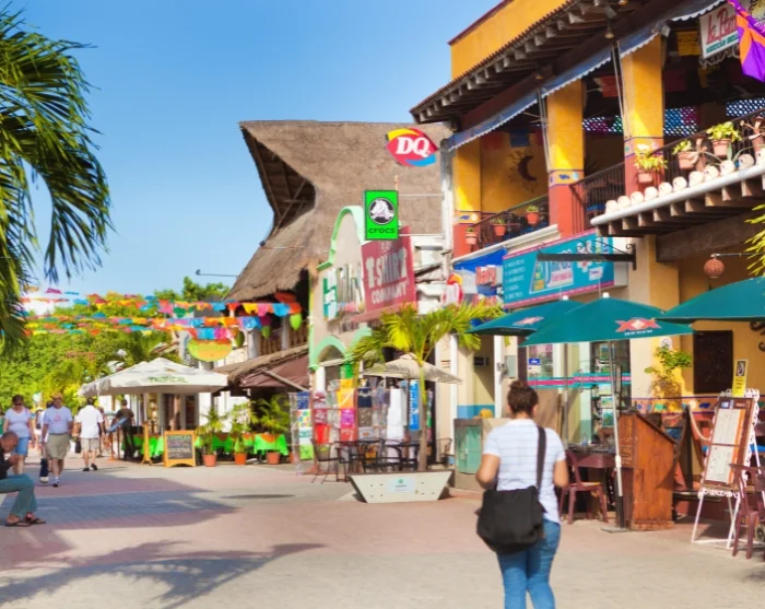 Centrum av Playa del Carmen är Plaza Mayor, som ligger vid stranden precis vid färjeläget till ön Cozumel. Från Plaza Mayor löper stadens livliga huvudgata Avenida 5, kantad av ett hav av butiker, restauranger och barer.