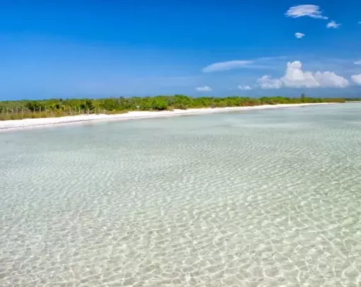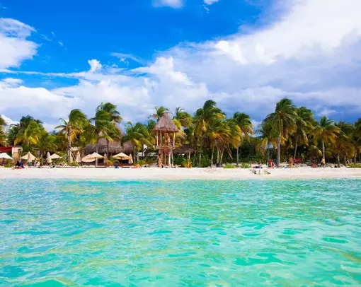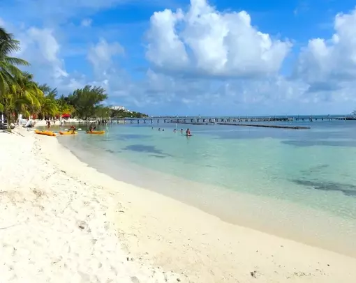 Isla Mujeres är känt för sitt charmiga öliv, sina vita sandstränder och det kristallklara karibiska vattnet. Med långgrunt vatten och lugna vågor är det perfekt för hela familjen.