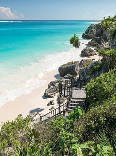 Efteråt fortsätter du till strandstaden Playa del Carmen, med sin kilometerlånga vita strand med palmer och kristallklart vatten.