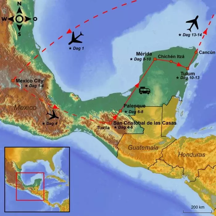 Inne i Palenques täta djungel upplever du ett imponerande mayaruinkomplex innan resan fortsätter till Yucatáns kulturella centrum Mérida, som erbjuder fantastisk arkitektur och gastronomi. På vägen mot kusten besöker du den världsberömda mayaruinen Chichén Itzá och den vackra cenoten Oxman.