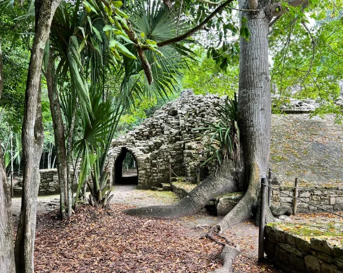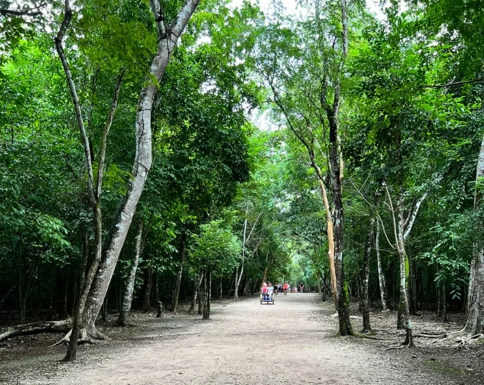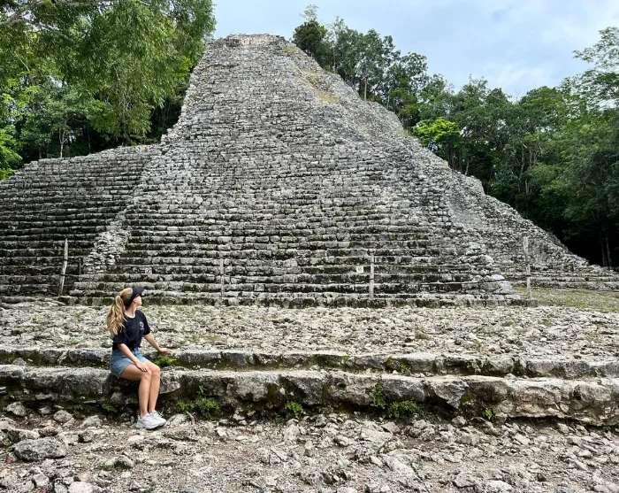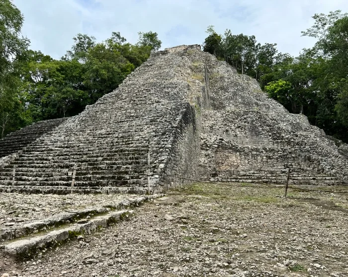 Första stoppet är Cobá, som en gång var en av regionens största och viktigaste mayastäder. Cobá-ruinerna ligger dolda inne i djungeln, vilket ger platsen en sagolik och nästan hemlighetsfull atmosfär – här kan du verkligen plocka fram din inre Indiana Jones. Ruinerna är utspridda över ett stort område som binds samman av gamla stigar, kallade sacbé. Du får åka cykeltaxi längs de slingrande stigarna genom den frodiga vegetationen och uppleva de mystiska templen samt den imponerande Nohoch Mul-pyramiden, som med sina cirka 42 meter är den högsta pyramiden på Yucatánhalvön och reser sig majestätiskt över trädtopparna.
