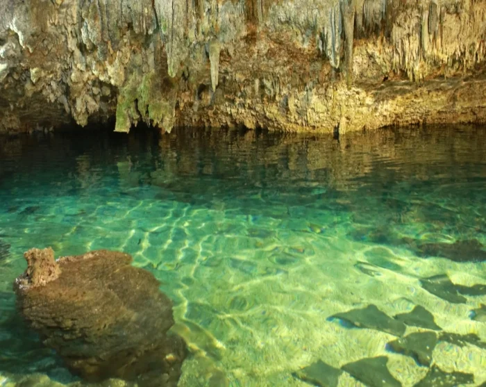 Efter besöket vid ruinerna och ett kort lunchstopp (lunch ingår) går turen vidare till den närliggande cenoten Choo-Ha – en stämningsfull, underjordisk sötvattensgrotta med kristallklart vatten och vackra droppstensformationer. Här har du tid för ett uppfriskande dopp i en rofylld miljö. Vid cenoten finns omklädningsrum med dusch, toaletter och möjlighet att hyra flytväst.