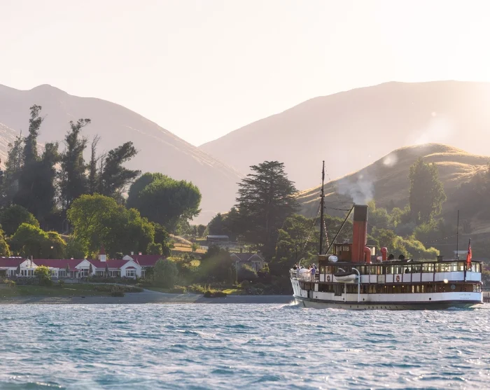 Resan börjar med en 45 minuter lång båtresa över Lake Wakatipu ombord på TSS Earnslaw, ett anrikt ångfartyg från 1912 och det enda koleldade passagerarfartyget i drift på södra halvklotet. Under färden kan du utforska maskinrummet, njuta av utsikten från däck eller koppla av med något gott från det lilla caféet ombord.