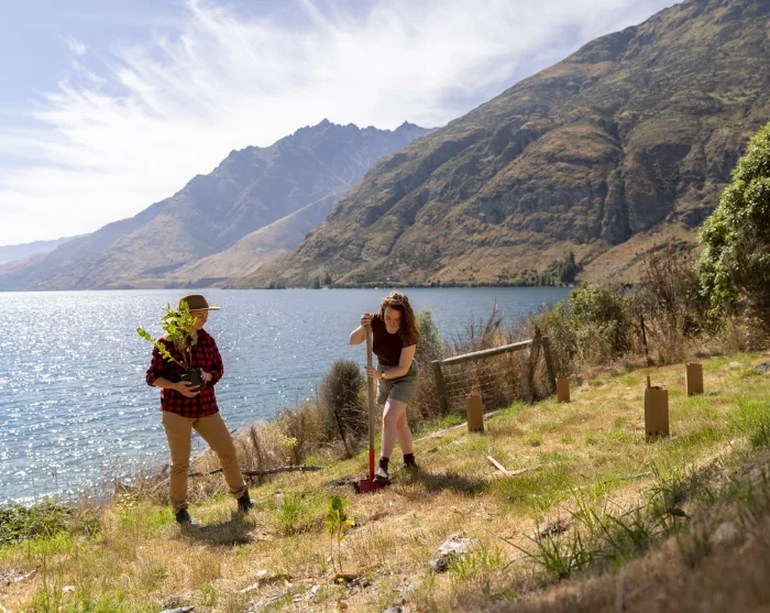Walter Peak High Country Farm är vackert belägen vid foten av det 1 800 meter höga berget Walter Peak. Vid ankomsten välkomnas du av gårdens dedikerade hortonom (en slags trädgårdsmästare) som tar dig med på en guidad promenad genom de frodiga trädgårdarna, fruktlundarna och bikuporna. Under rundturen får du lära dig mer om områdets historia och ekosystem – bland annat hur man arbetar för att ta bort invasiva trädarter och återskapa det ursprungliga landskapet genom att plantera inhemska växter. Du får själv möjlighet att välja och plantera ett litet nyzeeländskt träd eller en buske i gårdens plantskola och därmed bidra till återställandet av de naturliga livsmiljöerna, vilket bland annat kan locka tillbaka fågellivet till området.