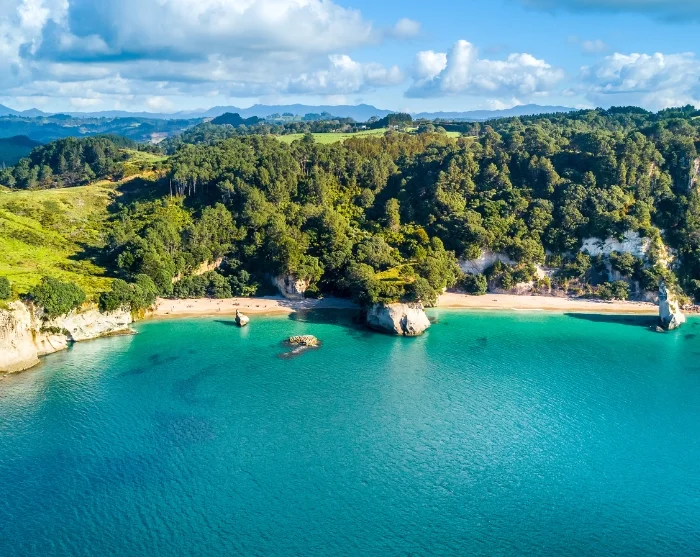 Se fram emot att uppleva Coromandel-halvöns höjdpunkter med vidsträckta skogar, förtrollande sandstränder och den ikoniska, naturskapade klippbågen Cathedral Cove (Te Whanganui-A-Hei). Det finns många natursköna stopp längs vägen med korta promenader och gott om fotomöjligheter, där du kan njuta av regionens imponerande landskap.