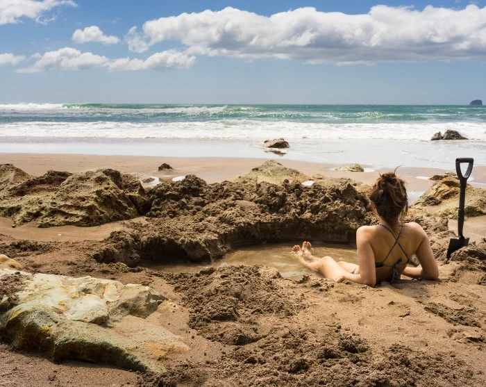 Om tidvattnet tillåter det besöker ni Hot Water Beach, där du kan gräva ett hål i sanden och skapa ditt eget geotermiska spa medan havets vågor försiktigt svalkar dig. Glöm inte badkläder och ombyte till denna unika upplevelse!*