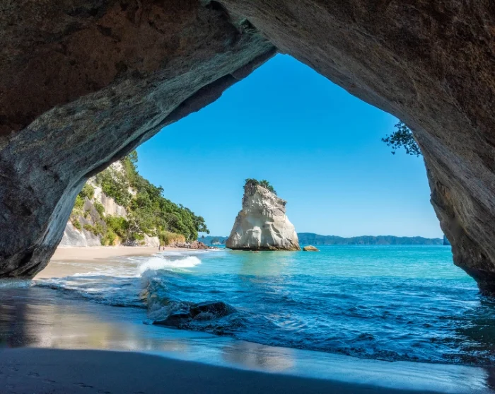 Efter lunchen (på egen bekostnad) fortsätter resan till den berömda klippformationen Cathedral Cove, ett av Nya Zeelands mest ikoniska naturfenomen.