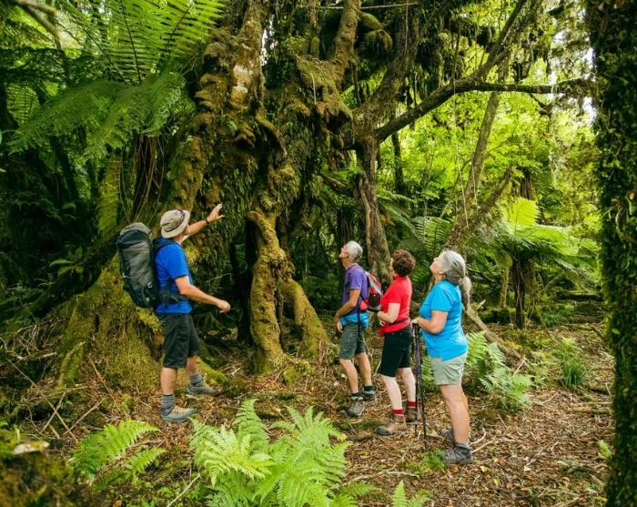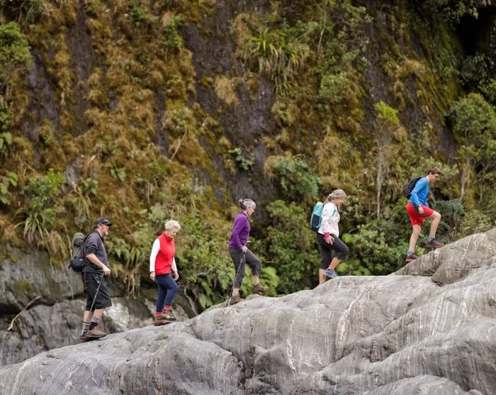 I din egen takt promenerar du förbi glittrande glaciärfloder och små bäckar, genom tät podocarp-regnskog och förbi dolda skatter i naturen, som vilda svampar, inhemska sniglar och ett överflöd av orkidéer. Lyssna till forsande vattenfall och fågelkvitter, och håll utkik efter en gems eller en tahr på de snöklädda bergssluttningarna.