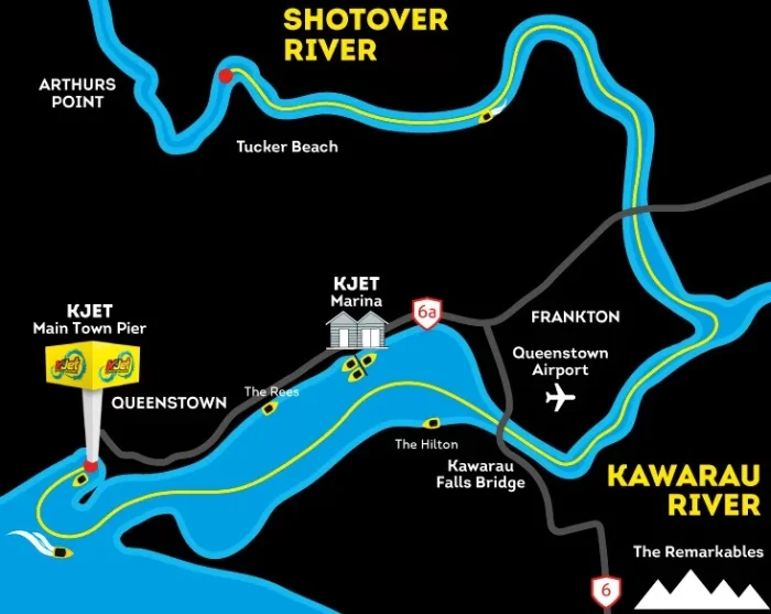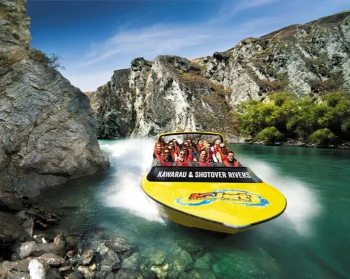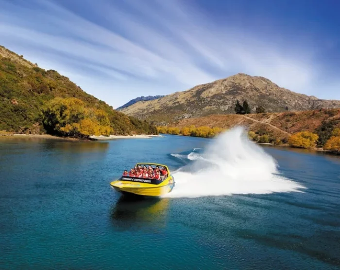 Turen börjar vid Queenstown Pier, där du kliver ombord på en kraftfull jetbåt. Gör dig redo för en timmes äventyr över Wakatipu Lake och vidare nerför Kawarau- och Shotoverfloderna. Under färden kommer båten upp i hastigheter på nära 95 km/h och gör häftiga 360°-svängar samt snäva manövrar genom grunda passager, där det ibland bara är några centimeter vatten under båten. Det är både ett tekniskt mästerverk och en upplevelse för alla sinnen – vi lovar att du får fjärilar i magen, ett leende på läpparna och ja, du får nog även räkna med att bli lite blöt på köpet.