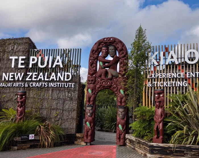 Te Puia rymmer också New Zealand Māori Arts and Crafts Institute, där du kan se vävning och träsnideri utförda enligt gamla traditioner. Du har dessutom möjlighet att uppleva en traditionell maoriföreställning.