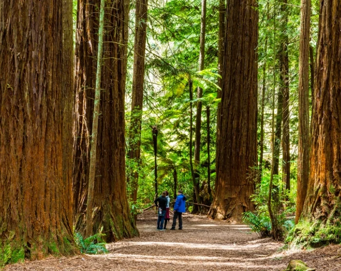 Redwoods-skogen är fylld av imponerande kaliforniska redwoodträd (Sequoia sempervirens), som planterades i början av 1900-talet som ett experiment. Idag är vissa av träden över 70 meter höga och mer än 100 år gamla. Det är en magisk upplevelse att vandra bland dessa jättar.