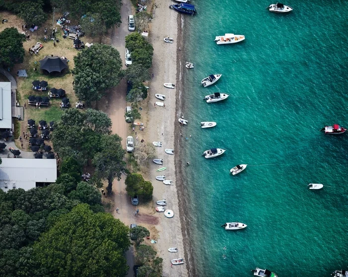 Turen startar från Viaduct Harbour i Auckland, där du tar en katamaranfärja till Waiheke Island. Båtresan tar dig genom den vackra Haurakigolfen med utsikt över öar och kustlinjer innan du anländer till Man O’ War Bay på öns östra sida.