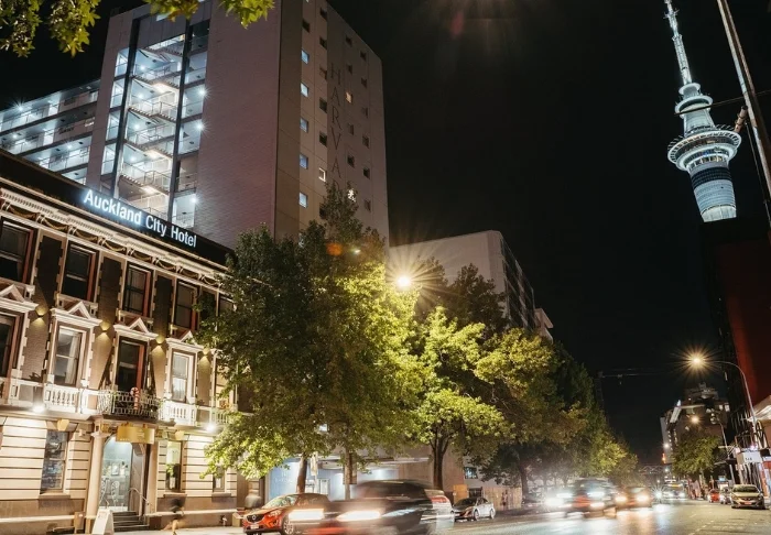 Legacy Airedale Hotel Auckland har ett perfekt läge på Queen Street, mitt i Aucklands livliga teater- och nöjesdistrikt. Hotellet är inrymt i en vackert renoverad historisk byggnad där charm möter modern komfort, vilket skapar en varm och välkomnande atmosfär. Bara några minuters promenad från hotellet hittar du några av stadens främsta sevärdheter, däribland Sky Tower och det imponerande hamnområdet Viaduct Harbour.