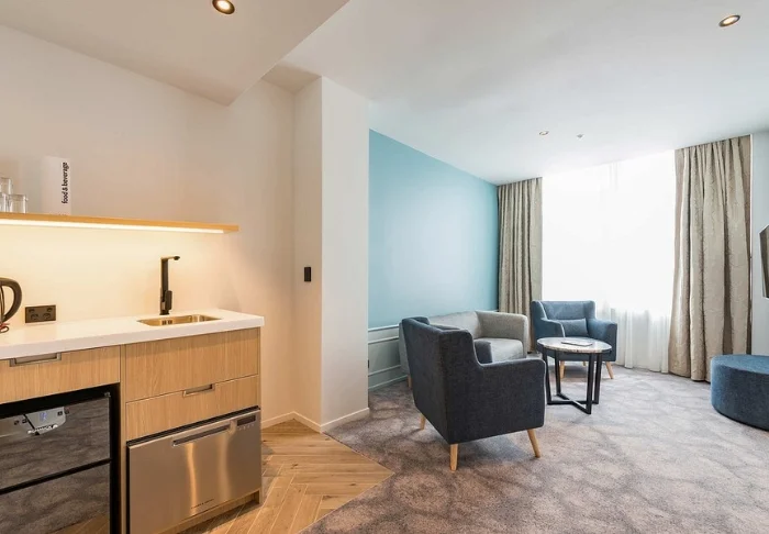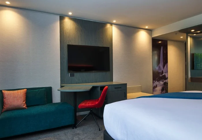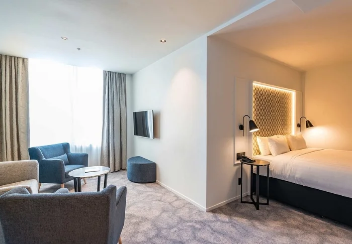 Hotellet är modernt och stilrent inrett med fokus på både komfort och hållbarhet. Totalt finns 86 rum, som alla har eget badrum och är utrustade med minibar, värdeskåp, smart-TV, skrivbord, vattenkokare samt te- och kaffefaciliteter. Du har självklart också tillgång till gratis wifi under hela vistelsen.