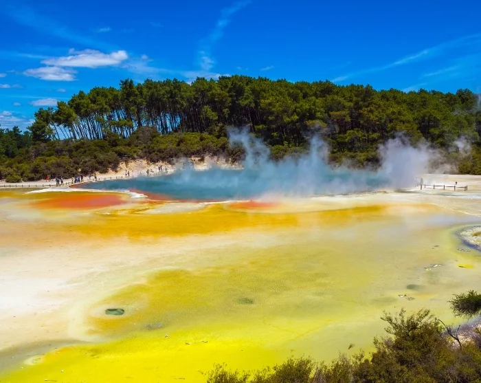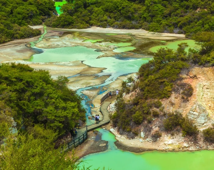 Staden är byggd ovanpå en aktiv vulkanisk zon, och om du längtar efter att uppleva naturens krafter på nära håll har du kommit helt rätt. Överallt i området sprutar gejsrar, bubblar lerpölar och heta källor ångar. Just denna geotermiska aktivitet, som Rotorua är så känt för, har gjort staden till ett riktigt wellnesscentrum i Nya Zeeland.