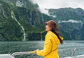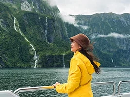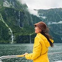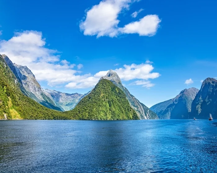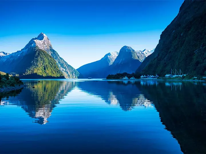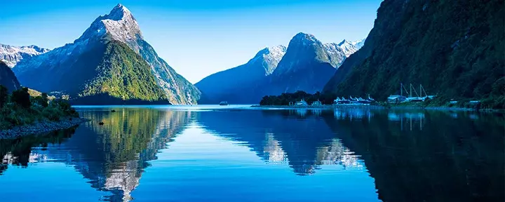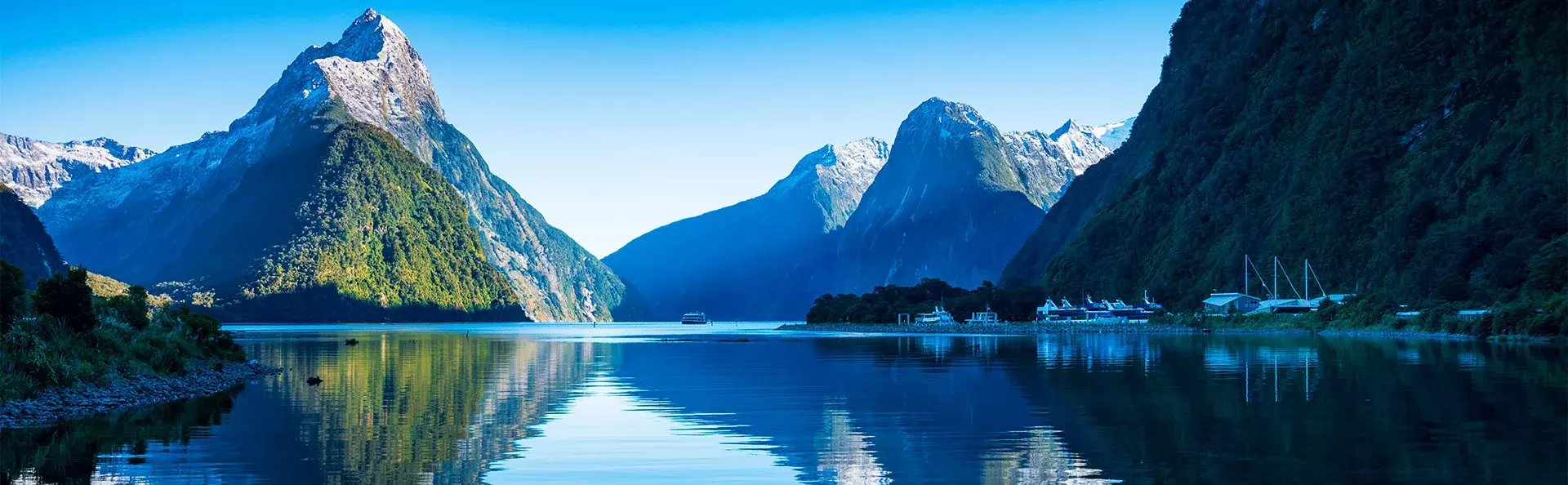 Milford Sound i Fiordland nationalpark är en av Nya Zeelands främsta sevärdheter och kanske den vackraste naturupplevelsen du kan få i landet. Det är svårt att inte bli imponerad efter ett besök i den storslagna fjorden med sina lodräta klippväggar, dundrande vattenfall och frodiga regnskog.