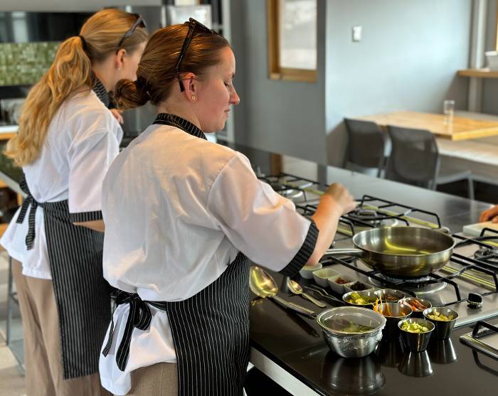 Kursen startar med en 30-minuters utflykt till den traditionella utomhusmarknaden i San Pedro. Efter att noga ha valt ut alla de rätta ingredienserna går turen vidare till köket, som ligger på elfte våningen med en spektakulär utsikt över hela staden.