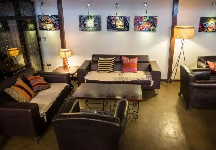 Det gemensamma området är i två våningar: längst ner ligger lodgens bar och restaurang, där dina inkluderade måltider serveras. Maten här är riktigt läcker och en blandning av nationella och internationella rätter med fokus på att använda lokalproducerade råvaror.