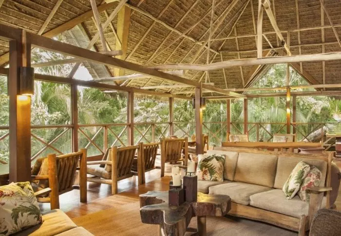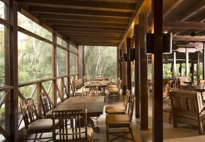 På första våningen finns ett loungeområde, där du kan sjunka ner i en soffa med en bra bok eller dela dagens upplevelser med andra resande. Du kan också sitta häruppe och njuta av en läcker cocktail medan solen går ner och djungelns nattaktiva djur och insekter vaknar upp. Du lär bli överraskad över hur mycket ”naturliga oljud” djur och insekter faktiskt gör härute.