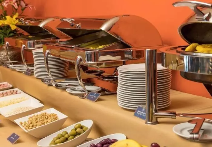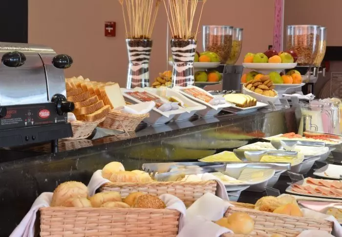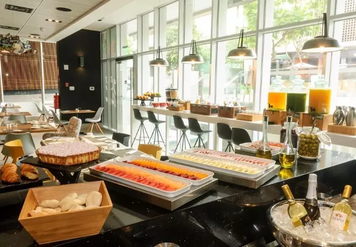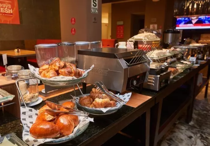 På hotellets restaurang kan du inleda dagen med den inkluderade frukosten. Här kan du välja mellan olika frukostprodukter, bröd, ost, skinka, juice m.m.