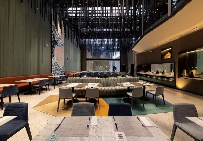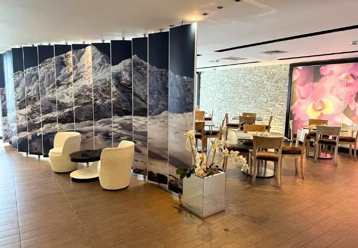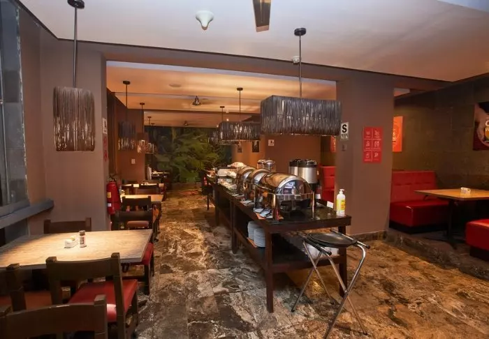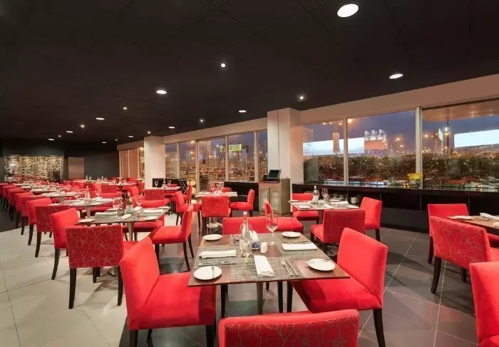 Hotellet har en egen restaurang, där den inkluderade frukostbuffén serveras. Restaurangen serverar också lunch och middag.