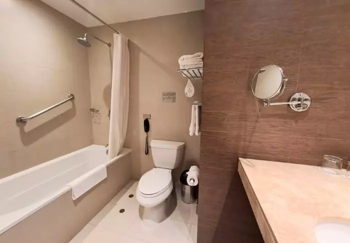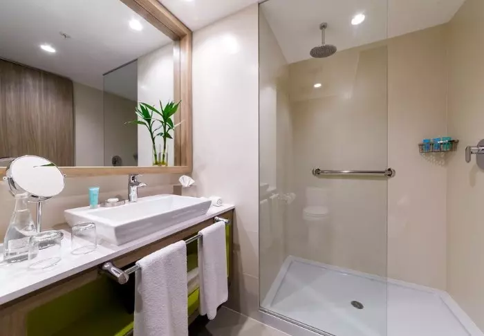 Rummen är moderna och väl inredda med alla förnödenheter du behöver: en skön säng att sova i, tv, wifi, aircondition, minibar, vattenkokare för kaffe eller te, värdeskåp och egen toalett/eget badrum. Bara lugn – fönstren är ljudisolerade så att du kan få en god natts söm trots att du är vid flygplatsen.