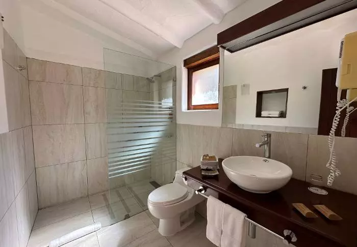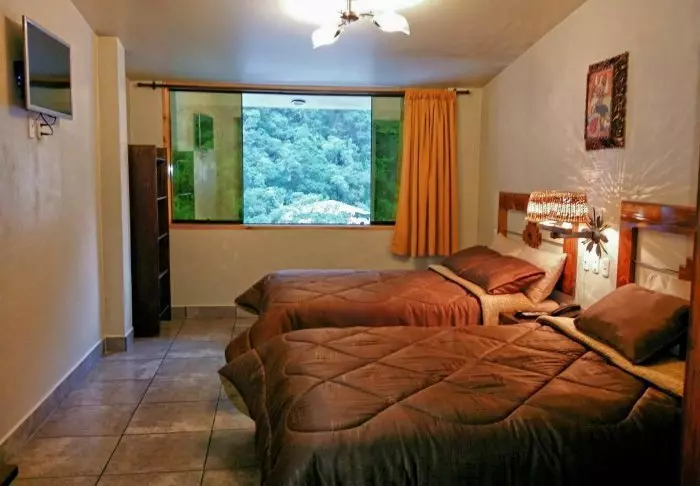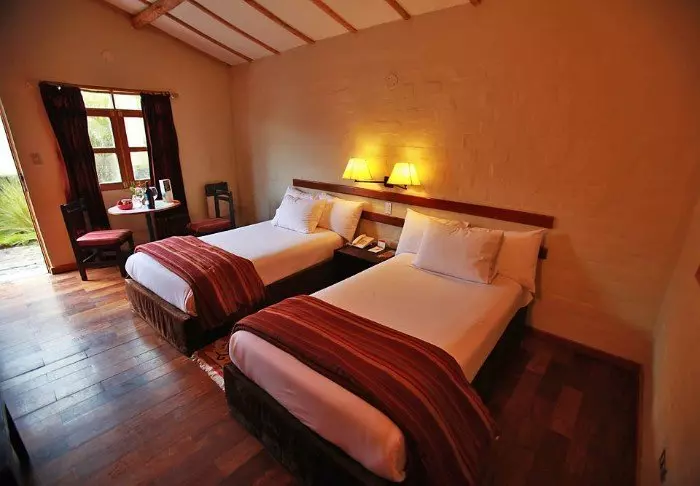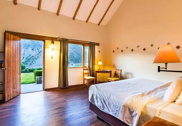 Rummen är enkelt inredda, men samtliga rum har element, kabel-tv, wi-fi och eget badrum, där du kan ta ett välförtjänt långt varmt bad efter två dagars vandring i Anderna.