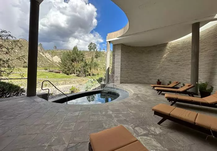 Colca Lodge har sina egna termiska bad, vilka är den perfekta utgångspunkten för dig som vill varva ner helt och hållet. Låt kroppen slappna av i det varma vattnet, medan du njuter av en kall dryck och ljudet av den forsande floden lugnar ditt sinne. Efteråt kan du ta en tupplur i en av solstolarna, som finns runt om trädgården mellan de färgglada quinoaplantorna. Lodgen har också privata termiska bad som du kan hyra.