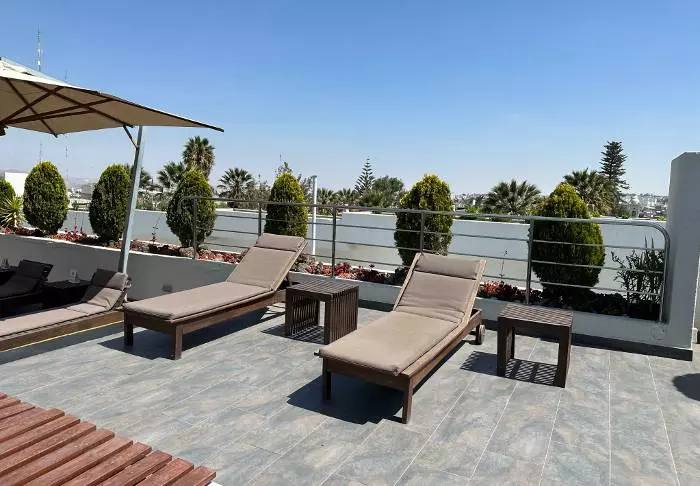 På takterrassen hittar du poolen, där du kan ta ett uppfriskande dopp och sedan koppla av i en solstol och släcka din törst med en läcker färskpressad juice. Njut av utsikten över staden och de magnifika vulkanerna, som imponerande stiger över horisonten och ibland släpper ut ett moln av rök.