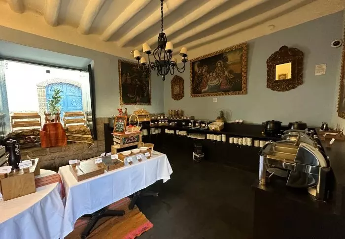 Din inkluderade frukost serveras som buffé i hotellets restaurang, Taypicamaña, med utsikt över stadens torg.