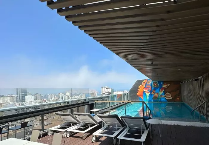 När dagen närmar sig sitt slut, kan du njuta av utsikten med en Pisco Sour i hotellets takbar, medan solnedgången långsamt målar himlen i vackra nyanser.